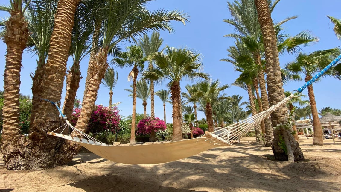 На пляжі бухти ви можете скуштувати справжньої арабської кави у бедуїнській кав'ярні, а ще покататись на верблюдах і влаштувати баунті-фотосесію на тлі пальм, білосніжних альтанок і гамаків, оповитих квітами!