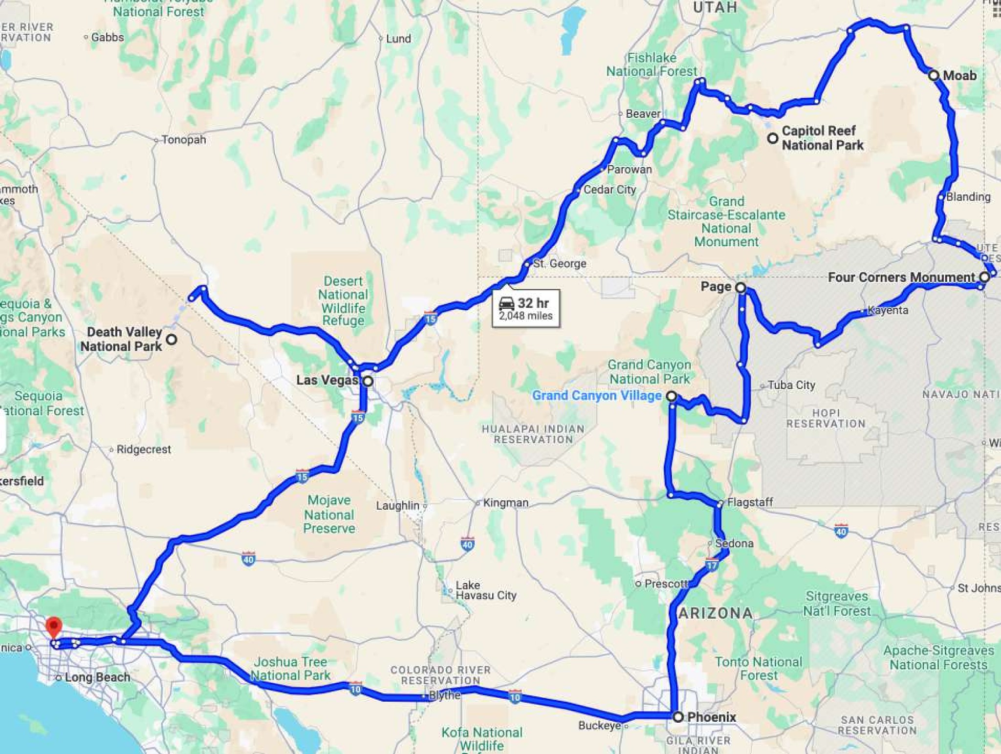 Гарантированный тур: Лос-Анджелес | Лас-Вегас | НП Долина Смерті | Каньйон Вірджин | НП Зайон | НП Брайс Каньйон | НП Кепітол-Риф | Долина Гоблінов | НП Парк Арки | Моаб | Парк Точка Мертвого коня | Долина Монументів | Пейдж | Глен-Каньйон та дамба Глен | оз. Пауелл | Каньйон Антилопи | НП Гранд Каньйон | Траса 66 | Флагстафф | Седона | Фенікс | Палм-Дезерт | Лос-Анджелес