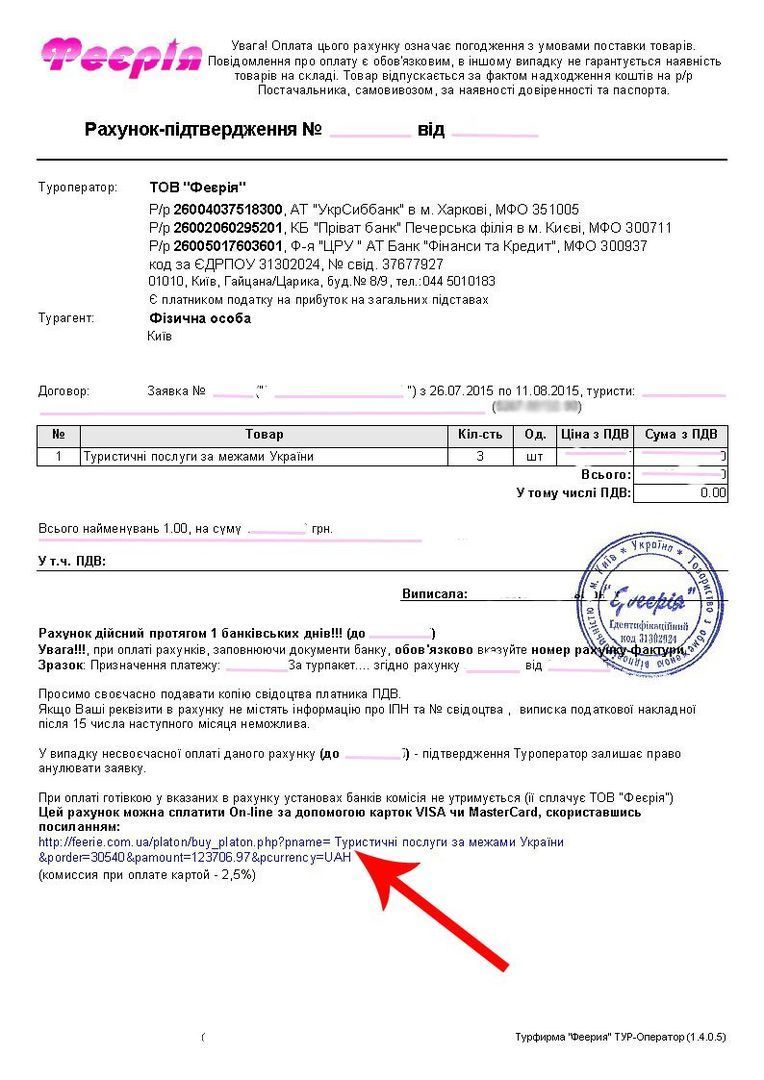 Оплата рахунку за туристичні послуги через платіжну систему PLATON
